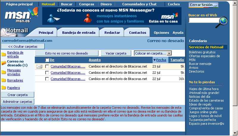 Curiosidad: Hotmail funciona...lo puso en correo no deseado.